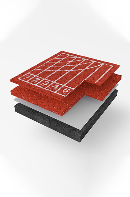 透氣型塑膠跑道是由底涂、彈性顆粒中層、面層組成的運動場地。底涂為單組分聚氨酯膠黏劑,與空氣中的濕氣反應固化;彈性顆粒中層由 PSV-211 單組分專用膠黏劑與 EPDM 顆粒按照 1:6~1:7 的質量比混合后攤鋪而成;噴顆粒面層由 PSV-302 噴顆粒面膠、膠粉、EPDM 顆粒按比例混合,攪拌均勻后,噴涂于彈性顆粒中層上固化而成。