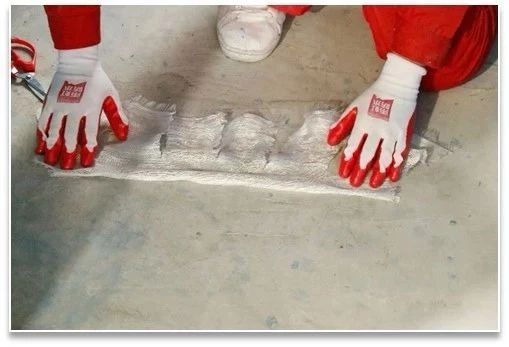 鋪貼胎體增強布的寬度宜為200-300mm,平面搭接寬度為150-250mm,管道搭接高度為50mm且胎體增強布不得有褶皺、不平、翹邊現象。